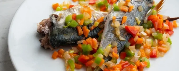 A makréla tökéletesen kombinálható zöldségekkel és tejfölből, kemény sajtból, szójaszószból és fűszerekből álló pikáns öntettel. Az étel zsenge és étvágygerjesztő lesz, és családi vacsorára és ünnepi asztalra egyaránt alkalmas.