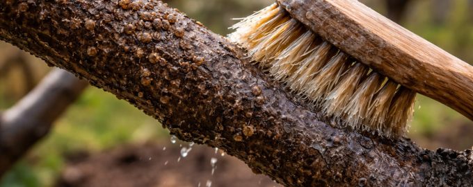 Tisztítsuk le a régi kérget a törzsről egy fémkefével.